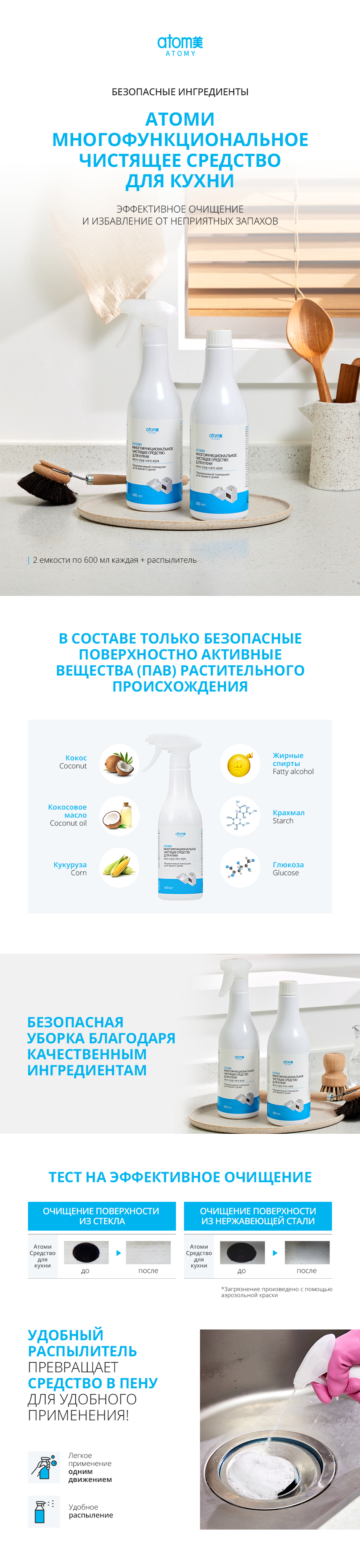 Атоми Многофункциональное чистящее средство для кухни (2 емкости + распылитель)
